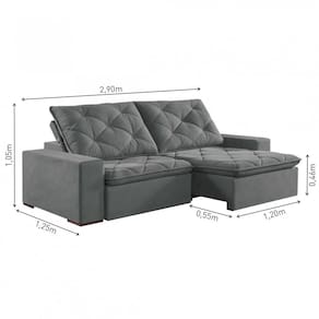 Este sofá é sinônimo de puro conforto. Com detalhes de costura dupla e capitonê no assento e encosto, o estofado Trento se diferencia dos outros modelos. Muito imponente, ele possui molas pocket e bonnel em seu assento, além do pillow top, resultando no máximo conforto. Este estofado é uma combinação perfeita para você que busca deixar o seu ambiente mais charmoso e que não abre mão do conforto. Encosto reclinável com catraca blindada de 7 estágios, almofada preenchida 100% com fibra siliconada. Braço com espuma D20 e medida de 25cm. Pés de madeira na Cr castanho. Acompanha Almofadas extras: Não Almofada do assento: Fixa Almofada do encosto: Removível Altura: 105 cm Altura do assento até o chão: 46 cm Altura do Encosto: 105 cm Altura dos Pés: 2,5 cm Ambiente Principal: Sala de Estar calculo: unidade Complexidade da Montagem: Baixa: pode ser montado por uma pessoa sozinha Cr: Grafite Cr do Produto: Grafite Densidade do Assento: D-26 Densidade do Encosto: Camadas de Densidades Diferentes Enchimento do Assento: Espuma Enchimento do Encosto: Fibra Siliconada Estilo: Moderno Estilo de Braço: Braços Quadrados Firmeza do Assento: Macio Informações Complementares: Possuiu Molas Pocket e Molas Bonnel Itens Inclusos: 1 Sofá e Manual de Montagem Largura: 290 cm Linha ou Coleção: Trento Manual de Montagem e Instalação: https://cdn2.madeiramadeira.com.br/atributo/estofados-ferrari/712122-madeira-madeira-sof-trento.pdf Material da Estrutura: Madeira Eucalipto Material dos Pés: Eucalipto Modelo: Retrátil e Reclinável Necessita Montagem: Sim Origem do Produto: Nacional Peso: 120 kg Pet Friendly: Não Possui Apoio para Braços: Sim Possui Percintas Elásticas: Sim Possui Pés: 08 Possui Rodízio: Sim Profundidade: 180 cm Profundidade Quando Estendido: 180 cm Quantidade de Lugares: 05 Recomendações de Uso, Manutenção e Limpeza: "Para uma limpeza eficaz use um pano limpo e levemente umedecido em água. Logo após, seque a superfície com um pano seco e macio. Em grandes superfícies limpe pequenas áreas de cada vez, trabalhando de baixo para cima. E lembre-se: nunca utilize produtos de limpeza abrasivos como esponja de aço, saponáceos ou produtos à base de solventes. Para lustrar as partes de pintura em alto brilho, use uma flanela seca ou pano macio e limpo. Não é recomendável o uso de lustra móveis que possam engordurar a superfície. Não encoste o móvel diretamente na parede, mantenha uma distância de pelo menos 5 cm, pois deixando esse espaço, haverá circulação de ar evitando o aparecimento de mofo, que é causado pela humidade e falta de circulação do ar. Não exponha o móvel à umidade extrema, à luz solar direta ou a qualquer outra forma de calor. Móveis expostos ao sol podem apresentar manchas ou deformações de suas partes. " Revestimento do Braço: Tecido Rodízio com Trava: Não Sistema de Montagem: Parafusos status-cadastro: Aprovado Suporta Até (kg): 320 kg Tamanho: Tecido Predominante: Veludo Tipo de Encosto: Regulável Tipo de Mola: Molas Ensacadas (Pocket)