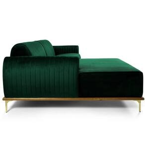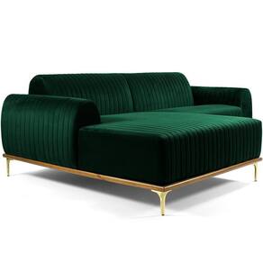 Sofá 6 Lugares Com Chaise Esquerdo Para Sala Molino 350cm D02 Veludo Verde Musgo C-303 - Lyam Decor O Sofá 6 Lugares com Chaise Esquerdo Para Sala de Estar Molino 350cm D02 Veludo Verde Musgo C-303- Lyam Decor exala formosura e elegância! Excelente opção para dispor em sua sala de estar ou espera, recepção, hall de entrada, dormitório, qualquer área de circulação ou antessala entre um cômodo e outro, as possibilidades de combinação são infinitas. Seu protagonismo é notório, sem sombra de dúvidas é perfeita para qualquer ambientação que desejar colocá-la. Com sua resistente estrutura, na cor castanho com detalhes em dourado, o encosto e assento revestidos em veludo, deixarão sua decoração ainda mais sofisticada. Oferecendo máximo conforto sem deixar de transmitir todo a magnitude que seu lar merece! Dimensões do produto (L x A x P) 350 x 76 x 150 cm Altura do assento: 44 cm Largura do assento: 235 cm Profundidade do assento: 54 cm Profundidade externa (lado sem Chaise): 85 cm Altura livre do encosto: 35 cm Profundidade livre de assento (Chaise): 119 cm Largura Chaise: 115 cm Largura do braço: 25 cm Altura interna do braço: 19 cm Altura externa do braço: 60 cm Altura dos pés: 16 cm Características: Estrutura em madeira de eucalipto, partes em MDF ou OSB. Revestimento veludo. Base em madeira envernizada na cor castanho com pés de alumínio na cor D'Ouro. Assento fixo com espuma D-28 HR sobre chapas de OSB. Encosto fixo com espuma D-23 sobre percintas elásticas. Braço com espuma D-23. Chaise do lado Esquerdo do sofá. Suporta até 120 Kg por assento. - Por se tratar de estofado as medidas podem ter uma pequena variação de até 3 cm. - A tonalidade do produto real poderá ter ligeira variação devido o lote de tecidos. Observações importantes: - Produto para residencial em ambiente interno, não devendo ficar exposto diretamente ao sol, calor e umidade excessivos. - Pode haver alguma diferença de tonalidade entre a imagem e o produto real, por conta do tratamento de imagens e a calibração de cores do seu monitor. - As imagens são meramente ilustrativas, não acompanham objetos de decoração e eletrônicos. - Ao receber a mercadoria, o cliente deve verificar as condições da embalagem, caso haja alguma não assine o comprovante de recebimento. - Montagem, desmontagem e outras instalações serão de responsabilidade do cliente. Não nos responsabilizamos, no ato da , por subir escadas/elevadores ou pelo transporte por guincho em apartamentos. Eventuais despesas são de responsabilidade do comprador. - Confira as dimensões do produto e certifique-se de que passará normalmente por supostos elevadores, portas, escadas e/ou corredores de sua residência. Altura Montado: 76 | Largura Montado: 350 | Profundidade Montado: 150