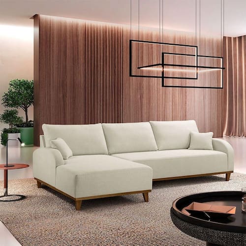 Sofá Albano Linho 250cm Chaise Lado Esquerdo Meu Sofá Online A302 Linho Branco