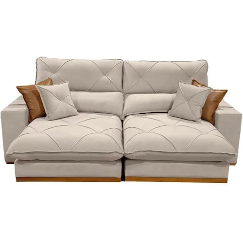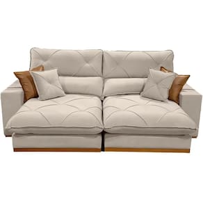 Sofá Aquiles com Molas Ensacadas 4 Lugares Retrátil e Reclinável 250cm Tecido Veludo Zarat Maximize seu conforto e transforme sua sala de estar com o Sofá Aquiles com Molas Ensacadas 4 Lugares Retrátil e Reclinável 250cm Tecido Veludo Zarat. Projetado para o máximo relaxamento, este estofado combina funcionalidade e sofisticação. Seu assento possui um sistema de Molas Ensacadas Individuais e um generoso Pillow Top de 25cm, garantindo um suporte perfeito e uma maciez que se adapta ao corpo, ideal para longas sessões de filmes ou um descanso merecido. A ampla largura de 250cm oferece espaço de sobra para acomodar confortavelmente quatro pessoas, tornando-o o ponto de encontro preferido da família. O design inteligente do Sofá Aquiles eleva a experiência de uso: o assento é retrátil, permitindo que você o estenda como uma chaise, e o encosto é reclinável, preenchido com fibra siliconada para um apoio extra acolhedor, ajustando-se à sua posição ideal. O revestimento em Tecido Veludo confere um toque luxuoso e irresistivelmente macio, além de adicionar uma elegância atemporal ao ambiente. Com estrutura robusta e rodízios de silicone para fácil movimentação, este sofá é a união perfeita entre durabilidade, beleza e o conforto que a sua casa merece. Garanta já o seu na Estrela Móveis.\nMEDIDAS\nAltura 110cm\nLargura 250cm\nProfundidade Fechado 120cm\nProfundidade Aberto 180cm\nCARACTERÍSTICAS\nFabricante Zarat\nModelo Sofá Aquiles\nGarantia 3 meses\nTipo de Produto Sofá Retrátil e Reclinável\nAmbiente Sala\nAssento Retrátil com Percinta Elástica, Pillow de 25cm, Molas Ensacadas e Espuma D33 Soft\nEncosto Reclinável, Preenchido com Fibra Siliconada\nMaterial Pés Madeira Maciça\nRevestimento Veludo\nPossui Rodízios de Silicone Sim\nAcompanha Almofadas Sim\nINFORMAÇÕES IMPORTANTES\nObjetos decorativos que porventura apareçam na foto, não acompanham o produto. Não nos responsabilizamos pela montagem/instalação dos produtos.\nMontagens, desmontagens e instalações são responsabilidades do cliente. Indicamos que contrate uma empresa de montagem ou um montador de sua confiança.\nAlém disso, favor verificar se os pés e acessórios estão dentro do forro inferior do produto. Em suma, todas as informações divulgadas sobre o produto são de responsabilidade do Fabricante.\nAs cores do produto podem variar de acordo com o seu monitor, a iluminação do ambiente em que você está e até mesmo a sua percepção visual. Além da cor, pequenos detalhes e acabamentos podem não ficar evidentes na foto, por isso as imagens são meramente ilustrativas