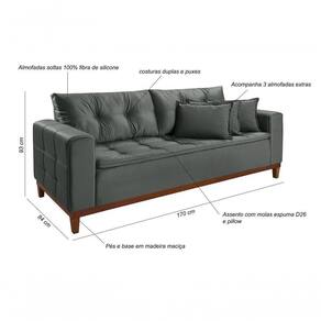 - Encosto com almofadas soltas 100% fibra de silicone;