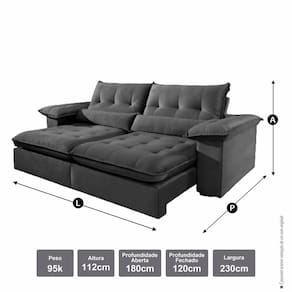 Descrição: O Sofá Atenas é a escolha perfeita para quem busca conforto e sofisticação. Com medidas montado de 1,12m de altura, 1,20m de profundidade fechado, 1,80m de profundidade aberto e 2,10m de largura, este sofá se adapta a diversos ambientes, proporcionando uma experiência aconchegante e elegante. Especificações: