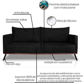 Linho Boucle, Ferro, Tecido Corano, Fibra de Silicone, Espuma HR28, Molas BonnelVendido e entregue por WebContinental