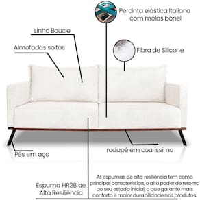 Linho Bouclé, ferro, tecido corano, fibra de silicone, molas bonel, espuma HR28Vendido e entregue por WebContinental