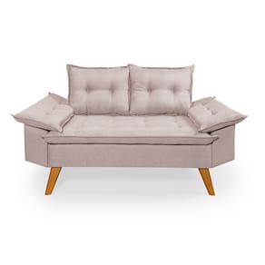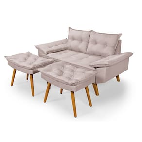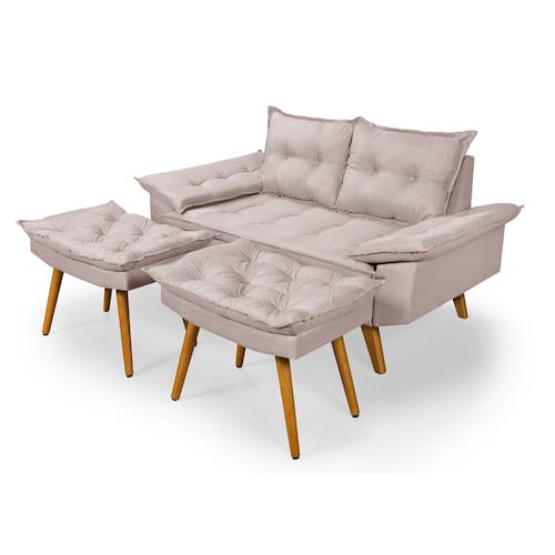 Sofá Bariloche 2 Lugares Com duas banquetas revestido em tecido Linho.