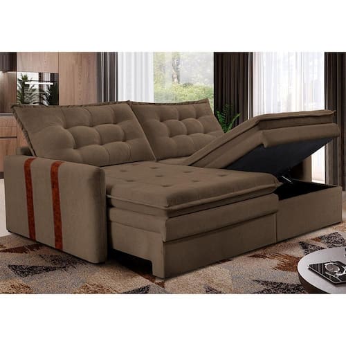 Sofá Baú Sem Caixa Retrátil 2,00m Petit Boucle Marrom Praticidade e Conforto para sua sala!