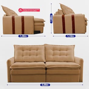 Sofá Baú Sem Caixa Retrátil 2,00m Petit Boucle Marrom Praticidade e Conforto para sua sala!