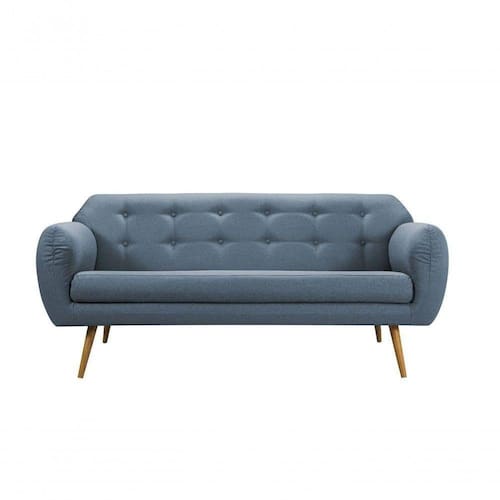 Sofá fabricado em madeira de eucalipto, revestido com espuma D28 e tecido, detalhes de botonê em seu encosto. Pés em madeira tauari. Sofá com estilo retrô, charmoso, elegante e compacto, fará toda diferença no ambiente em que for colocado.