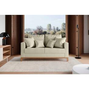 Sofá Beny 2 Lugares Com Base De Madeira Élpis Móveis Linho Bege