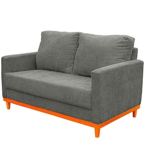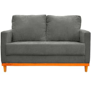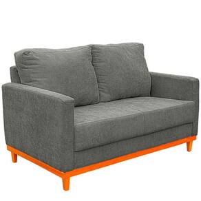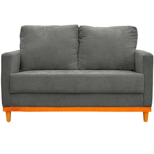 Sofa Berlim 2 Lugares Base De Madeira Tecido Impermeavel Cinza Escuro