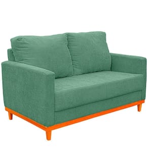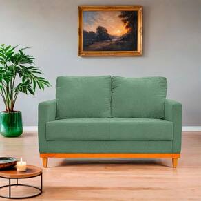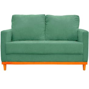Sofa Berlim 2 Lugares Base De Madeira Tecido Impermeavel Verde Agua