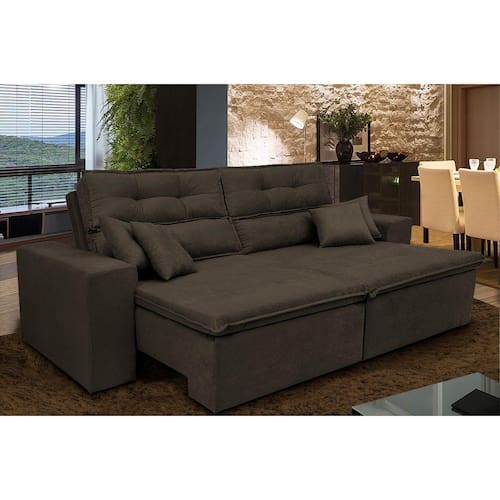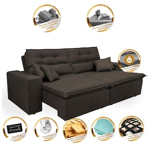 Procurando um estofado amplo, confortável, bonito e que combine com seu ambiente? Conheça o Sofá Cairo. Seus Assentos retráteis são compostos por espuma D28 e Pillow com manta em fibra de silicone, proporcionando muito conforto. Seus encostos reclináveis em 5 estágios possuem fibra siliconada e flocos de espuma. Sua estrutura é desenvolvida em madeira de eucalipto de reflorestamento o que proporciona maior segurança e qualidade ao sofá cairo. Desfrutar de um bom filme em sua sala não será mais como antes...