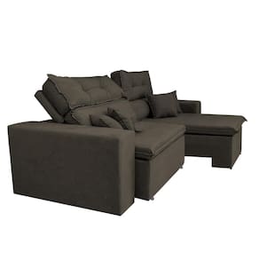 Sofá Cairo 3,12m Retrátil, Reclinável Tecido Suede Café Procurando um estofado amplo, confortável, bonito e que combine com seu ambiente? Conheça o Sofá Cairo. Seus Assentos retráteis são compostos por espuma D28 e Pillow com manta em fibra de silicone, proporcionando muito conforto. Seus encostos reclináveis em 5 estágios possuem fibra siliconada e flocos de espuma. Sua estrutura é desenvolvida em madeira de eucalipto de reflorestamento o que proporciona maior segurança e qualidade ao sofá cairo. Desfrutar de um bom filme em sua sala não será mais como antes... Características: - Encosto: Reclinável em fibra de silicone / Flocos de espuma - Assentos: Assento Retrátil com percintas tipo Italiana, Pillow composto por espumas progressivas, manta de 5cm espuma de poliuretano d28 + manta de 05cm de espuma híper soft d28 + manta acrílica siliconada, tudo isso para oferecer um conforto inigualável! - Braços em espuma D23 - Acompanha 4 lindas Almofadas que combinam perfeitamente com seu designer compostas por fibra de silicone e flocos de espuma revestidas com o mesmo tecido do estofado. - Fixação: Grampos galvanizados - Estrutura desenvolvida em madeira de eucalipto e pinus - Suporta até 110kg por pessoa