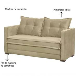 Sofá Londres 02 lugares, desenvolvido para o cliente que procura conforto e bem estar em um único produto, com estilo moderno dando um toque de sofisticação ao ambiente. É um produto 2 em 1, podendo ser um sofá muito aconchegante ou uma cama de casal super espaçosa. Estrutura em madeira de eucalipto proveniente de reflorestamento, contando com revestimento em tecido suede liso (100% Poliéster), assento retrátil com espuma HR26 + plumante, encosto com cintas elásticas e almofadas soltas com enchimento de fibra siliconada, forração da base com TNT, braças com espuma D23, e pés de madeira na cor . Suporta até 110 kg por assento. Esse móvel chegará em sua casa separado em 01 volume.