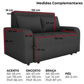Produto: Sofá cama | Cor: Multicolorido | Tonalidade: Multicolorido | Cômodo Indicado: Salas | Quantidade de lugares: 2 Cor: Chumbo