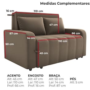 Design moderno, pde e charme em cada detalhe: o Sofá-Cama Amora New é feito para quem busca conforto! Sua estrutura é em madeira de Eucalipto de reflorestamento, reforçada por percintas elásticas, garantindo sustentação e durabilidade. A espuma D20 nos assentos e encostos, combinada à D23 nas braças, proporciona maciez na medida certa. O revestimento em tecido Veludo (toque aveludado, brilho elegante e visual clássico) eleva o visual do móvel, que ainda conta com bordas suavemente arredondadas e formato compacto. A abertura é do tipo manual, com alça frontal que transforma o sofá em cama de forma prática. Suporta até 110 kg por assento e acompanha 2 almofadas decorativas (65x45 cm) com enchimento de fibra siliconada e flocos de espuma. Os 8 pés em PVC garantem estabilidade. Este móvel será entregue em sua casa separado em 01 volume.