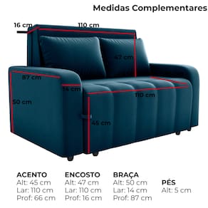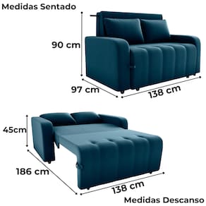 Sofa Cama 2 Lugares 138 cm Amora Veludo Maserati Azul Milani Store