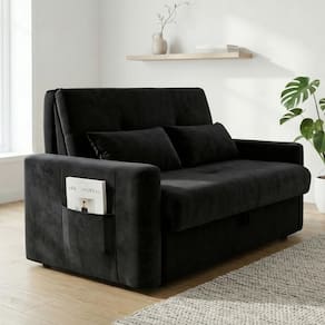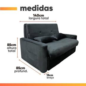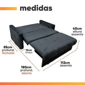 Importante sobre a : A é realizada até a portaria ou porta de entrada do indicado, desde que o acesso seja permitido. Para locais com portaria, a será feita no piso térreo. Não realizamos montagem, desmontagem, por escadas ou içamento. É responsabilidade do cliente verificar se as dimensões do produto são compatíveis com portas, elevadores e corredores. Evite imprevistos: confira todos os detalhes antes de concluir sua compra. MEDIDAS:: A = 85 cm L = 140 cm P = 85 cm ( FECHADO) / 180 cm (ABERTO) | PESO SUPORTADO POR ASSENTO:: 110 Kg | PESO:: 49 Kg | MODELO:: Sofá Cama 2 Lugares 1,40m com Almofadas Dani | MARCA:: Matrix | MATERIAL DA ESTRUTURA:: Produzido em madeira de eucalipto, que garante alta resistência. | DENSIDADE DA ESPUMA:: D20 (assento) D23 (braço), proporcionando conforto macio e estruturado, dentro das normas ABNT | MATERIAL DO ASSENTO:: D20 proporcionando maior conforto, excelente sustentação e durabilidade dentro das normas ABNT | QUANTIDADE DE LUGARES:: 2 | TIPO DE SOFÁ:: Sofá Cama | MATERIAL DO ENCOSTO:: Revestido em espuma D20 trazendo conforto e qualidade | TECIDO DO SOFÁ:: Revestido de tecido de veludo, unindo a elegância e o toque aconchegante do veludo com a modernidade e praticidade, que facilita a limpeza e aumenta a durabilidade | PERCINTAS:: Sistema de percintas elásticas de alta resistência, que proporcionam maior sustentação | MATERIAL DO BRAÇO:: Produzido com espuma D23 de alta qualidade, dentro das normas ABNT | MATERIAL DOS PÉS:: PVC plástico quadrado | QUANTIDADES DE PÉS:: 4 pés | DIFERENCIAL:: Acomoda até 2 pessoas, sentadas ou deitadas, com conforto e praticidade. Possui baú para armazenamento, ideal para otimizar espaços pequenos. Seu design compacto se adapta facilmente a ambientes reduzidos e conta com bolso lateral para guardar controle, l | INSTRUÇÕES E CUIDADOS:: Cuidado adequado com o deslocamento do produto, com a manutenção e limpeza, evitando produtos não recomendados ou abrasivos, evitar exposição a luminosidade ou calor excessivo e não arejado | GARANTIA:: 3 meses. | AVISO:: Importante sobre a : A é realizada até a portaria ou porta de entrada do indicado, desde que o acesso seja permitido. Para locais com portaria, a será feita no piso térreo. | Altura: 85 cm | É reclinável: Sim | Inclui manual de montagem: Sim | Largura: 140 cm | Profundidade: 85 cm | Quantidade de caixas de embalagem: 1 | Altura da embalagem: 87 cm | Comprimento da embalagem: 85 cm | Largura da embalagem: 140 cm | Peso da embalagem: 56000 g | Requer montagem: Sim | Cor: Preto