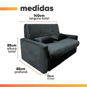 MODELO: Sofá Cama 2 Lugares 1,40m com Almofadas Dani