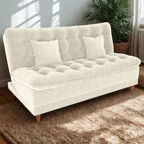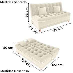 Estilo acolhedor e funcionalidade em todos os aspectos: Sofá-Cama Duda! Sua estrutura é feita 100% em madeira de Eucalipto de reflorestamento, com reforço de cintas elásticas e molas espirais. Os assentos e encostos contam com espuma D20 Soft, já o revestimento em tecido Bouclé (macio, encorpado, com visual moderno e aconchegante) entrega charme e aconchego. O sistema de abertura é tipo catraca e permite 3 posições: Sentado (modo sofá tradicional), Leitura (encosto levemente inclinado) e Descanso (modo cama). Suporta até 110 kg por assento e acompanha 2 almofadas decorativas (55x35cm). Os pés em madeira completam o design moderno. Este móvel chegará em sua casa separado em 01 volume.