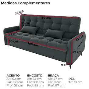Estofado 2 em 1 para mais praticidade, conforto e um toque moderno na sua sala! O sofá cama Pillar 2 lugares tem estrutura em madeira de eucalipto de reflorestamento e percintas elásticas para maior resistência. Assento e encosto com espuma D20 soft e braças em espuma D23, revestidos com tecido Veludo (macio, com toque suave e acabamento sofisticado). Sistema retrátil com catraca que permite a abertura para a função cama. Pés em ferro e bolsos laterais (35x37 cm) para guardar o que você quiser. Suporta até 110 kg por assento. Este móvel chegará em sua casa separado em 01 volume.