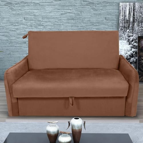 Sofá Cama 2 Lugares Com Baú Fabian Veludo Ferrugem