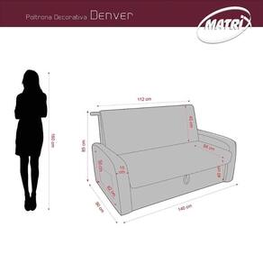 Assento: Altura 40 cm | Largura 112 cm | Profundidade 58 cmEncosto: Altura 45 cm | Largura 112 cm | Profundidade 15 cmBraças: Altura 50 cm | Largura 15 cm | Profundidade 82 cmPés: Altura 2 cm