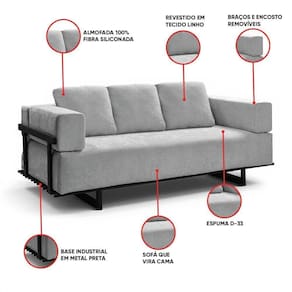 Sofá Cama 2 Lugares Living 200cm Base Industrial Sala Cherie Linho K01 - D`rossi Cinza