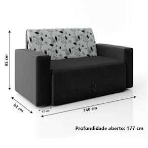 MEDIDAS: [ A ] = 85 cm [ L ] = 140 cm [ P ] = 82 cm (Aberto: 177 cm) LARGURA DO BRAÇO: 17 cm PESO SUPORTADO: 120kg por pessoa PESO: 80kg MODELO: Pratik 5000 MARCA: Mamflex DESIGN: Moderno COR: Preto / Cinza LUGARES: 2 Lugares ESTRUTURA: Madeira de reflorestamento Eucaliptos e Pinus REVESTIMENTO: Tecido Suede ASSENTO: com Percinta elástica DENSIDADE DO ASSENTO: D23 DENSIDADE DOS BRAÇOS: D18 PÉS: 4 GARANTIA DO FABRICANTE: 3 Meses