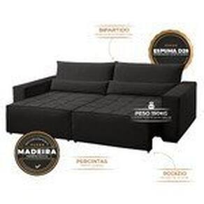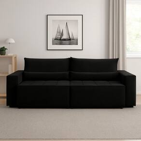 O Nepal é ideal pra quem valoriza liberdade e bem-estar. Com encosto removível e almofadas soltas, se transforma facilmente em uma cama. O design bipartido facilita transporte e montagem, enquanto o assento retrátil amplia o espaço pra relaxar. Estrutura firme em madeira de reflorestamento, espuma D26 com suporte de até 150kg por módulo e rodízios em silicone para movimentação suave. Um sofá que se adapta a você, seja para receber, assistir ou descansar. Produto Montado: Sim Acompanha Almofadas extras: Não Almofada do assento: Fixa Almofada do encosto: Removível Altura do assento até o chão: 45.0000 Altura do Encosto: 36 cm Altura dos Pés: 3 cm Altura Máxima dos Pés: 3.0000 Ambiente Principal: Sala de Estar codigo_ean: 7900288206015 Complexidade da Montagem: Baixa: pode ser montado por uma pessoa sozinha Cor: Preto Cor do Produto: Preto Estilo de Braço: Braços Quadrados Informações Complementares: Almofadas acompanham a cor do sofá. Itens Inclusos: 1 Sofá e Kit Ferragens Linha ou Coleção: Nepal Manual de Especificação Técnica: https://product-hub-prd.madeiramadeira.com.br/140100604/documents/adb7a106-a8bf-4c63-89ac-69f1f8963d9c2970426643817488935823085.pdf Manual de Montagem e Instalação: https://product-hub-prd.madeiramadeira.com.br/140100604/documents/986c617c-a80d-4f0c-86bb-8f8fc9e3fcd9afbcb96b0bd476a21747939240.pdf Marca: Apolo Estofados Material dos Pés: Plástico Montagem Flex: Encaixe de encostos, pés e rodízios Necessita Montagem: Sim Origem do Produto: Nacional Peso: 90 kg Pet Friendly: Não Possui Percintas Elásticas: Sim Possui Pés: 08 Possui Rodízio: Sim Profundidade Quando Estendido: 140 cm Profundidade quando extendido: 140.0000 Recomendações de Uso, Manutenção e Limpeza: Recomenda-se aspirar regularmente o sofá para manter o tecido livre de poeira. Em caso de manchas, utilize um pano limpo e umedecido, evitando esfregar com força. Sempre teste produtos de limpeza em uma área discreta antes do uso. Tecidos como microfibra, poliéster e modelos com proteção antimanchas são mais práticos para o dia a dia. Sistema de Montagem: O sofá é enviado com um kit contendo 8 pés, 4 rodízios e os parafusos correspondentes, acondicionados em saco plástico. Para montagem, fixe os pés nos quatro cantos da base, garantindo que estejam apoiados sobre a madeira de reforço. Em seguida, parafuse Suporta Até (kg): 150 kg Tecido Predominante: Suede Tipo de Encosto: Regulável Tipo de Mola: Molas Bonnel Tipo de Sofá: Sofá Cama