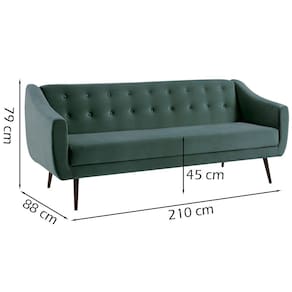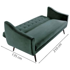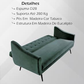 Sofa Cama 3 Lug Pes Tabaco 210 cm 7019X1 Veludo Verde Dmobiliario