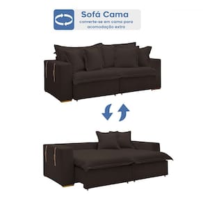 O(a) Sofá Cama 3 Lugares Arizona Retrátil Veludo Marrom - Celflex é produzido em Eucalipto na escala de brilho Fosco, e possui um grau de dificuldade de montagem: Médio.