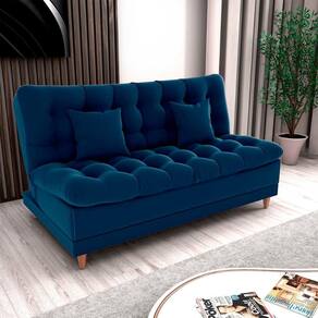 3 posições ajustáveis ? sentado, leitura e descanso, graças ao sistema de catraca no encosto.Estrutura reforçada em madeira de eucalipto de reflorestamento.Assento macio e resistente com molas espirais e espuma átil e compacto, acomoda até 3 pessoas como sofá e vira cama sempre que necessário.