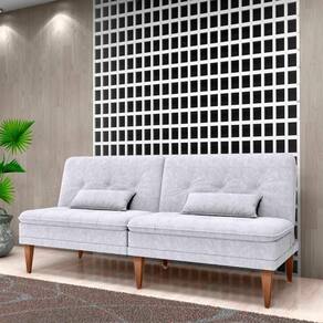 Os 6 pés de madeira garantem estabilidade e charme ao visual, enquanto as cintas elásticas reforçam a sustentação, tornando o sofá-cama ainda mais confortável e resistente.