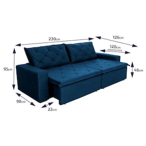 Sofá Cama Bangkok Sem Caixa 2,30m Retrátil e Reclinável Com Molas Velut Azul - King House
