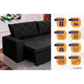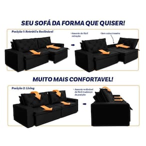 E não para por aí a sua estrutura interna é composto de madeira 100% de reflorestamento tornando-o resistente, e seu assento conta com espuma D33 e molas espirais, transformando seu sofá em um verdadeiro aconchego para assistir seu filme favorito, tirar aquela soneca que você aguarda após um dia agitado e estressante, ou dar aquela maratonada na série que você adiava tanto tempo por não ter encontrado o sofá certo, até agora!