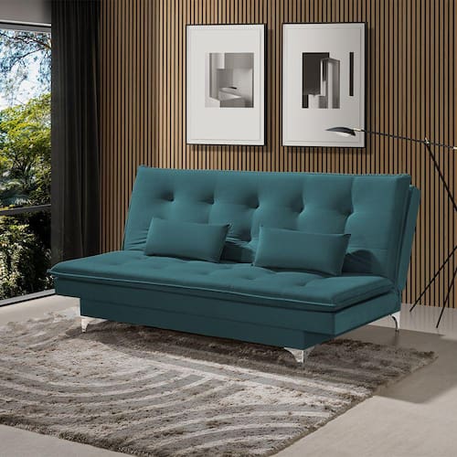 O sofá cama Berlim é a escolha perfeita para quem procura um móvel versátil e funcional para a sua casa. Ele é perfeito para acomodar seus convidados com conforto e estilo, além de proporcionar um espaço extra para dormir.CARACTERÍSTICAS:Tipo: Sofá cama Modelo: BerlimTecido: Veludo Cor: Azul DIMENSÕES DO PRODUTO:Altura: 92cmLargura: 190cmComprimento: 65cmATENÇÃOAS IMAGENS SÃO MERAMENTE ILUSTRATIVAS E PODEM SOFRER VARIAÇÕES DE COR E PEQUENOS DETALHES DE ACORDO COM O SEU MONITOR, ILUMINAÇÃO DO AMBIENTE E ATÉ MESMO A SUA PERCEPÇÃO VISUAL. Marca: ARTE ESTOFADOS
