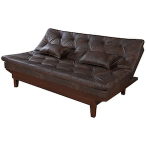 Sofa Cama Caribe 3 Lugares Reclinavel Base Em Madeira Revestido Couro Sintetico - Marrom