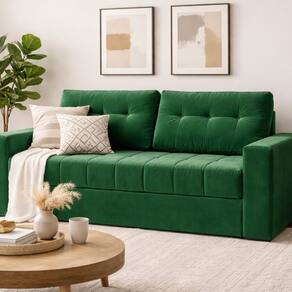 Transforme sua sala em um refúgio de conforto e funcionalidade com o Sofá Cama Murilo. Desenvolvido especialmente para quem busca praticidade em ambientes compactos, este modelo possui um sistema inteligente que se converte em cama de casal sem a necessidade de afastá-lo da parede, otimizando cada centímetro do seu espaço. Sinta o toque suave e sofisticado do tecido veludo aliado ao conforto superior dos assentos em matelassê com espuma D-28 soft. O encosto conta com almofadas soltas preenchidas com fibra siliconada, proporcionando um relaxamento inigualável. Sua estrutura robusta, composta por pés em madeira e aço carbono com pintura epóxi, garante a máxima durabilidade com um visual elegante. Adicione estilo e versatilidade ao seu lar com esta peça indispensável. Garanta o seu Sofá Cama Murilo e renove sua decoração com qualidade e bem-estar. Produto Montado: Não Acompanha Almofadas extras: Não Almofada do assento: Fixa Almofada do encosto: Removível Altura do assento até o chão: 45.0000 Altura do Encosto: 50 cm Ambiente Principal: Sala de Estar codigo_ean: 7900288335210 Cor: Veludo Verde Cor do Produto: Veludo Verde Densidade do Assento: D-28 Enchimento do Assento: Espuma Enchimento do Braço: Espuma D-23 Enchimento do Encosto: Fibra Siliconada Itens Inclusos: 1 Sofa cama Largura do Braço: 20 cm Largura Total: 182 cm Linha ou Coleção: Sofani Manual de Montagem e Instalação: https://product-hub-prd.madeiramadeira.com.br/322679564/documents/2b967d2d-cb83-4ffb-bb96-e92aca8c6e293297manualdemontagemmurilo.pdf Marca: Sofani Material dos Pés: Madeira Medida como Cama (A x L x P): 60x182x190 Modelo: Retrátil e Reclinável Necessita Montagem: Não Nível de Conforto: Intermediário Origem do Produto: Nacional Peso: 70 kg Peso Suportado por m²: 150 kg/m² Pet Friendly: Não Possui Baú: Não Possui Percintas Elásticas: Sim Possui Pés: 06 Possui Rodízio: Não Quantidade de Itens: 1 Reclinável: Não Recomendações de Uso, Manutenção e Limpeza: Não utilizar produtos químicos ou abrasivos na limpeza do estofado.Para limpeza de líquidos, utilizar pano, levemente umedecido com sabão neutro. Não friccionar em demasia. Para secar, utilizar ventilador ou deixar o móvel em ambiente arejado, nunca exposto ao sol Revestimento do Assento: Veludo Revestimento do Braço: Tecido Revestimento do Encosto: Veludo Tecido Predominante: Veludo Tipo de Assento: Regulável Tipo de Encosto: Regulável Tipo de Sofá: Sofá Cama
