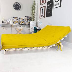 Itens inclusos: 1 futon 130cm x 190 cm x 16 cm. 1 base de madeira pinus 130 cm x 190 cm x 11 cm.