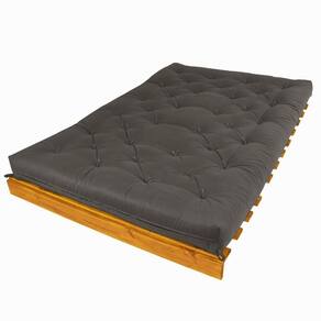 Colchão futon casalEnchimento de mantas de algodão natural e manta de fibra siliconadaEstrutura de espuma ortopédica D28Amarras nas extremidadesBase de madeira maciça