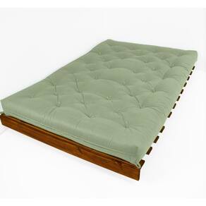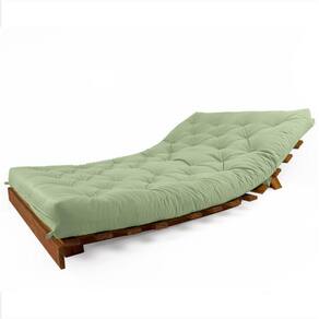 Colchão futon casalEnchimento de mantas de algodão natural e manta de fibra siliconadaEstrutura de espuma ortopédica D28Amarras nas extremidadesBase de madeira maciça