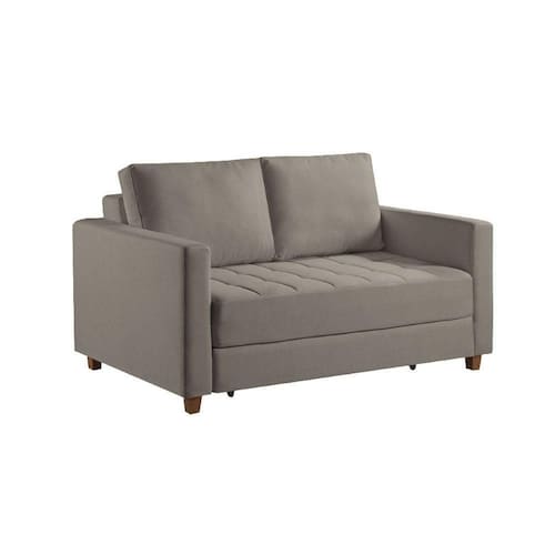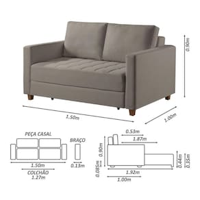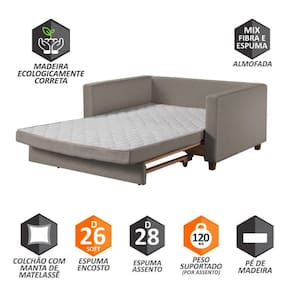 Disponivel no modelo casal e solteiro, o sofa cama Marcelle atende a todos os perfis de usuario. Os Pes de madeira dao a sustentacao e confianca necessaria, alem de almofadas soltas para facilitar no seu manuseio.