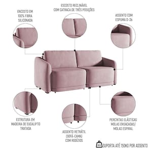 Renove sua sala de estar com o Sofá Cama Casal para Sala 176cm Polska K04 Veludo Rosê, da Mpozenato.