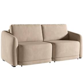 Renove sua sala de estar com o Sofá Cama Casal para Sala 236cm Polska Z08 Veludo Bege, da Mpozenato.