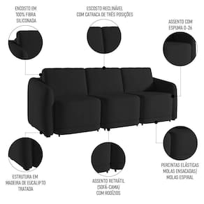 Renove sua sala de estar com o Sofá Cama Casal para Sala 276cm Polska K04 Veludo Preto, da Mpozenato.