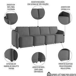 Essa peça impressionante foi projetada para trazer conforto e estilo ao seu espaço, principalmente com o recurso retrátil, em que você pode ajustar facilmente o sofá para atender às suas necessidades de assento, além de aproveitá-lo como cama e acomodar perfeitamente as suas visitas. Isso porque, a espuma D26 garante o máximo de conforto, enquanto o revestimento de alto padrão acrescenta um toque de elegância. Seja para assistir a um filme ou para receber convidados, esse sofá 4 lugares será o complemento perfeito para a sua sala de estar.