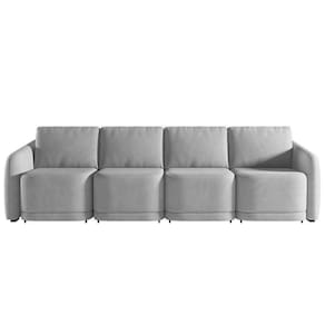Renove sua sala de estar com o Sofá Cama Casal para Sala 316cm Polska K04 Veludo Cinza, da Mpozenato.