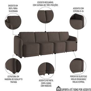 Essa peça impressionante foi projetada para trazer conforto e estilo ao seu espaço, principalmente com o recurso retrátil, em que você pode ajustar facilmente o sofá para atender às suas necessidades de assento, além de aproveitá-lo como cama e acomodar perfeitamente as suas visitas. Isso porque, a espuma D26 garante o máximo de conforto, enquanto o revestimento de alto padrão acrescenta um toque de elegância. Seja para assistir a um filme ou para receber convidados, esse sofá 4 lugares será o complemento perfeito para a sua sala de estar.