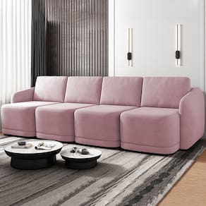Renove sua sala de estar com o Sofá Cama Casal para Sala 356cm Polska K04 Veludo Rosê, da Mpozenato.